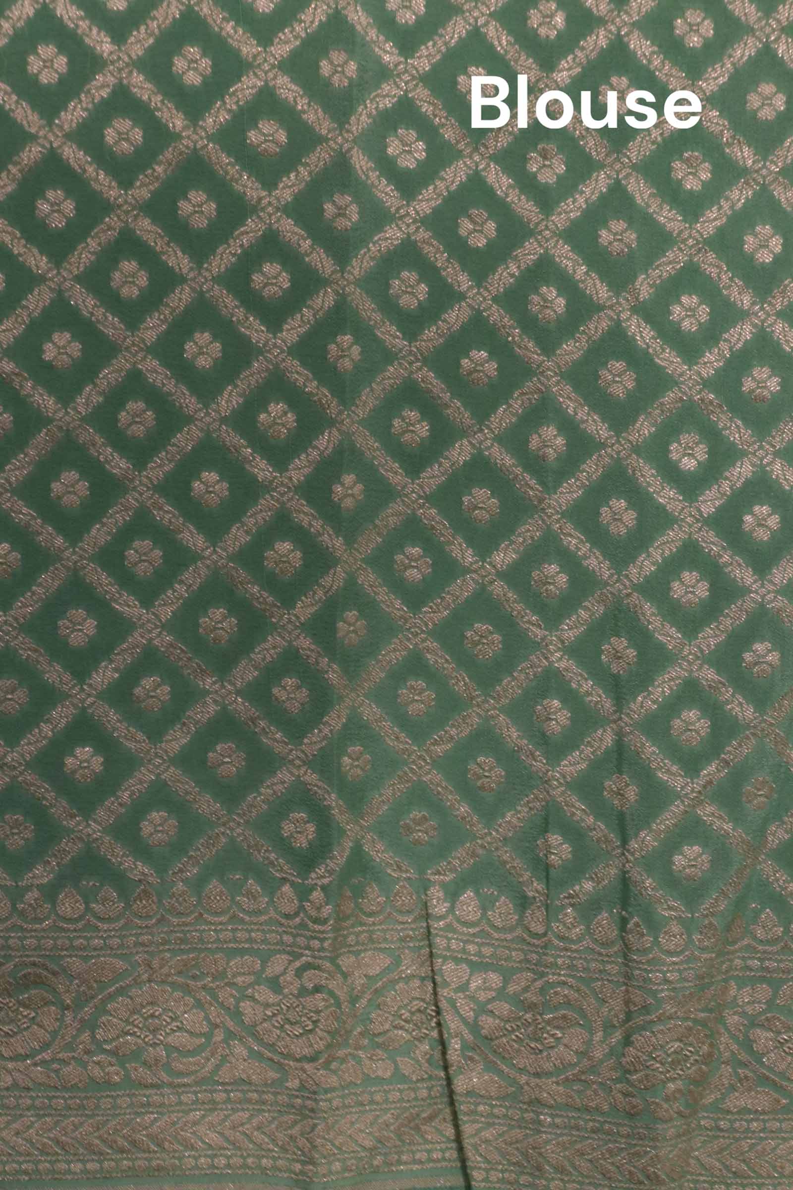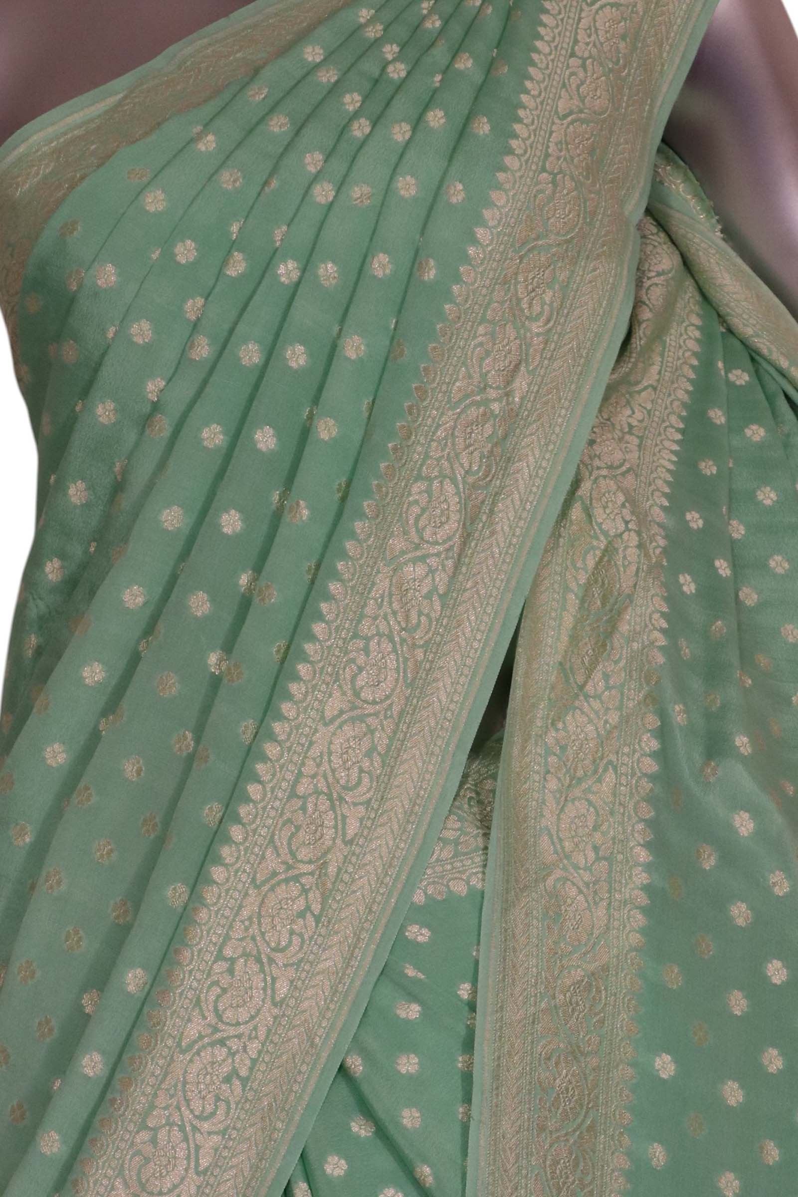 Pure Handloom Zari Butta Banarasi Crepe Silk Saree.