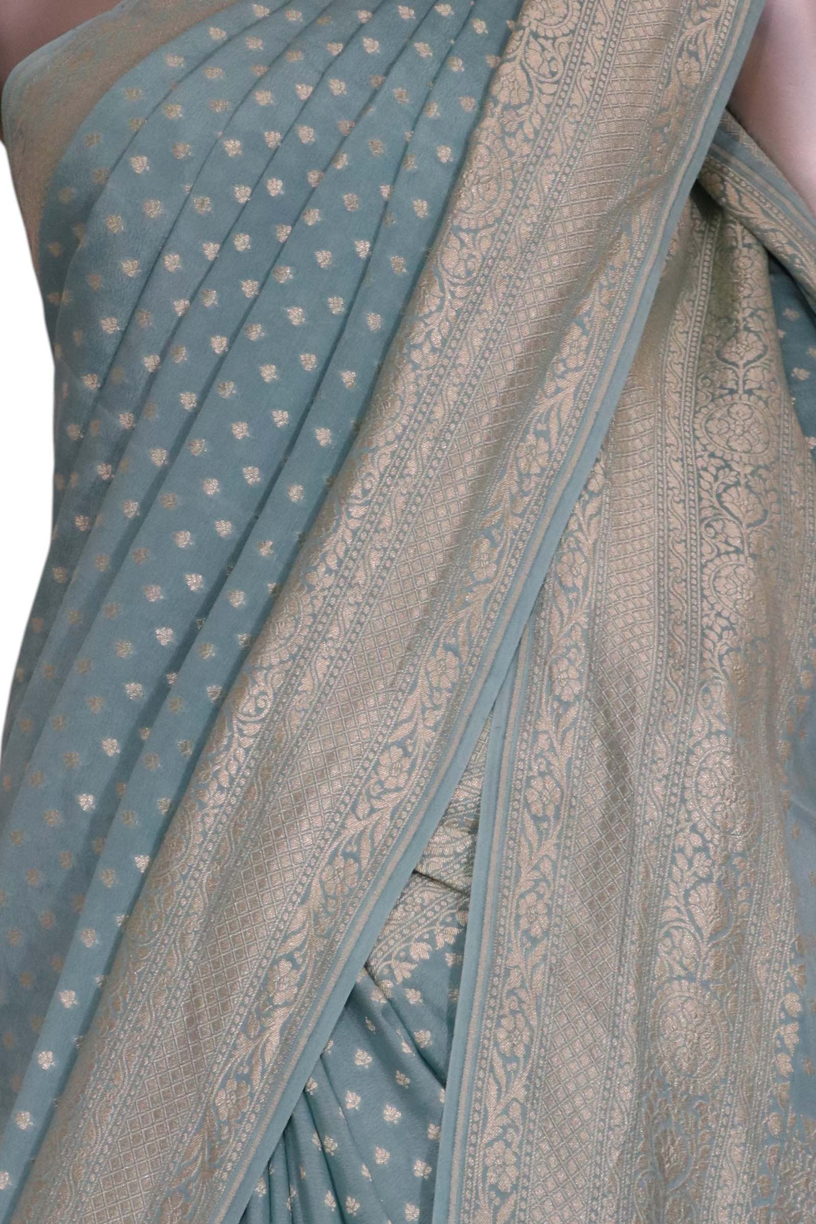 Pure Handloom Zari Butta Banarasi Crepe Silk Saree.
