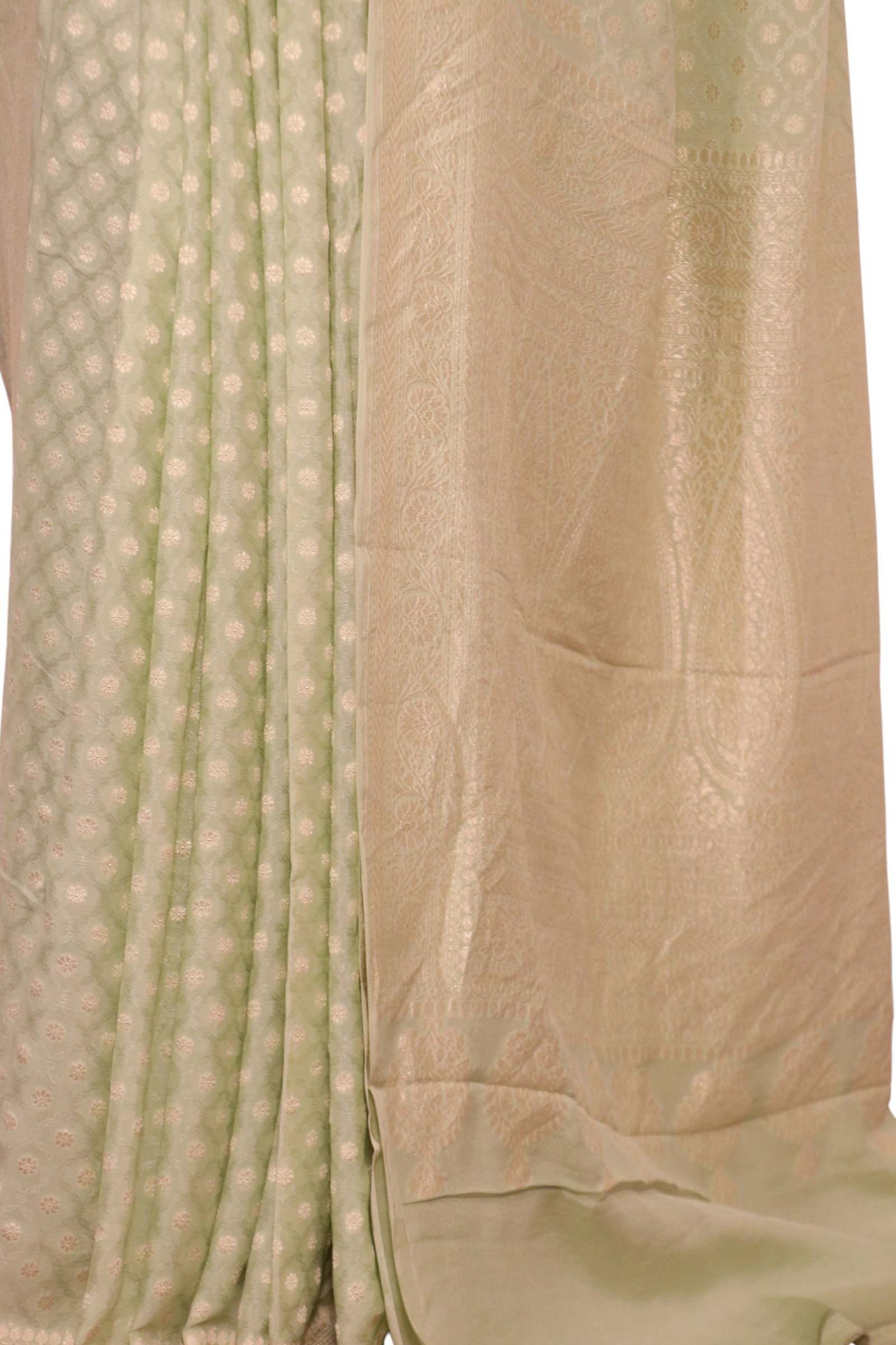 Pure Handloom Zari Butta Banarasi Crepe Silk Saree.