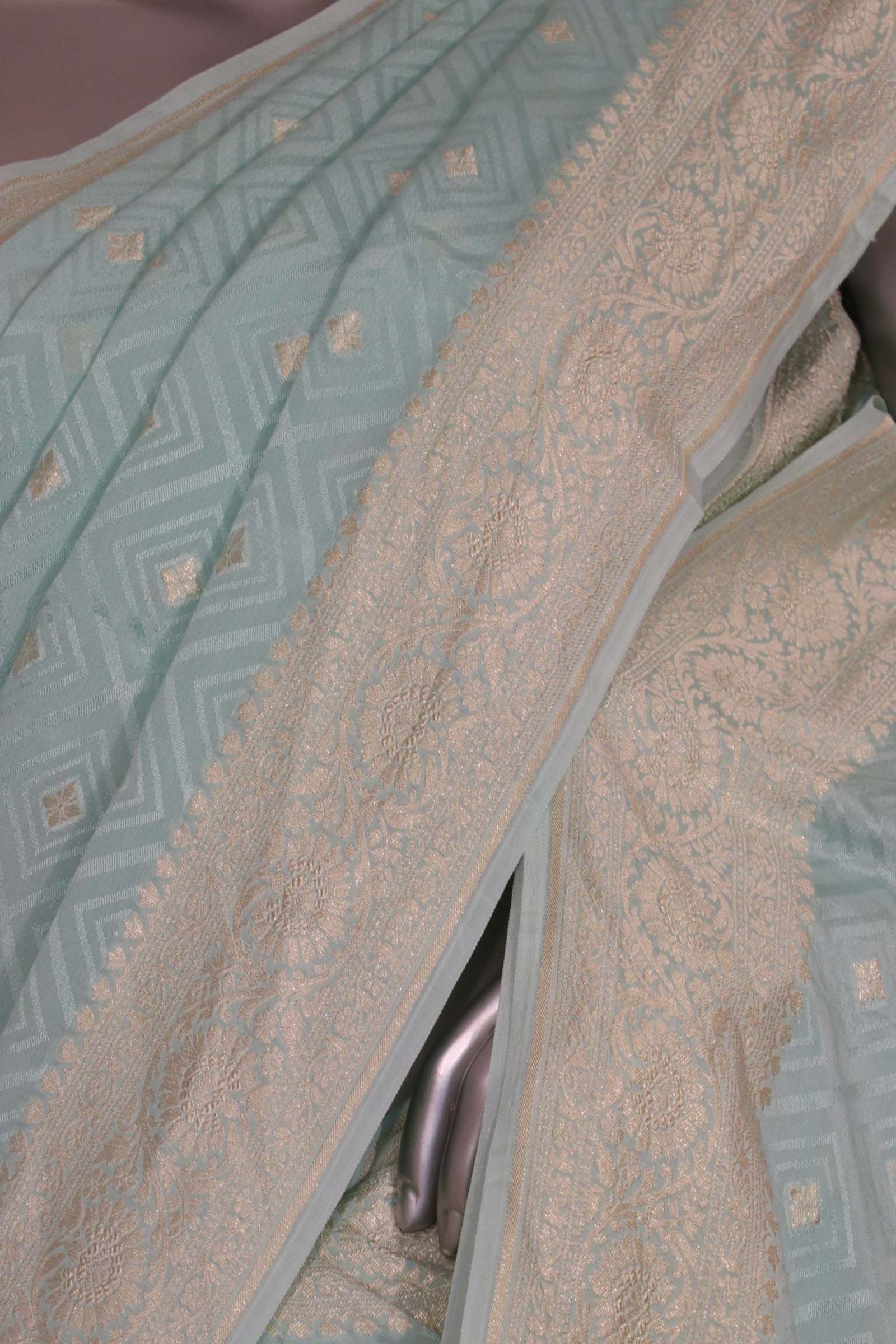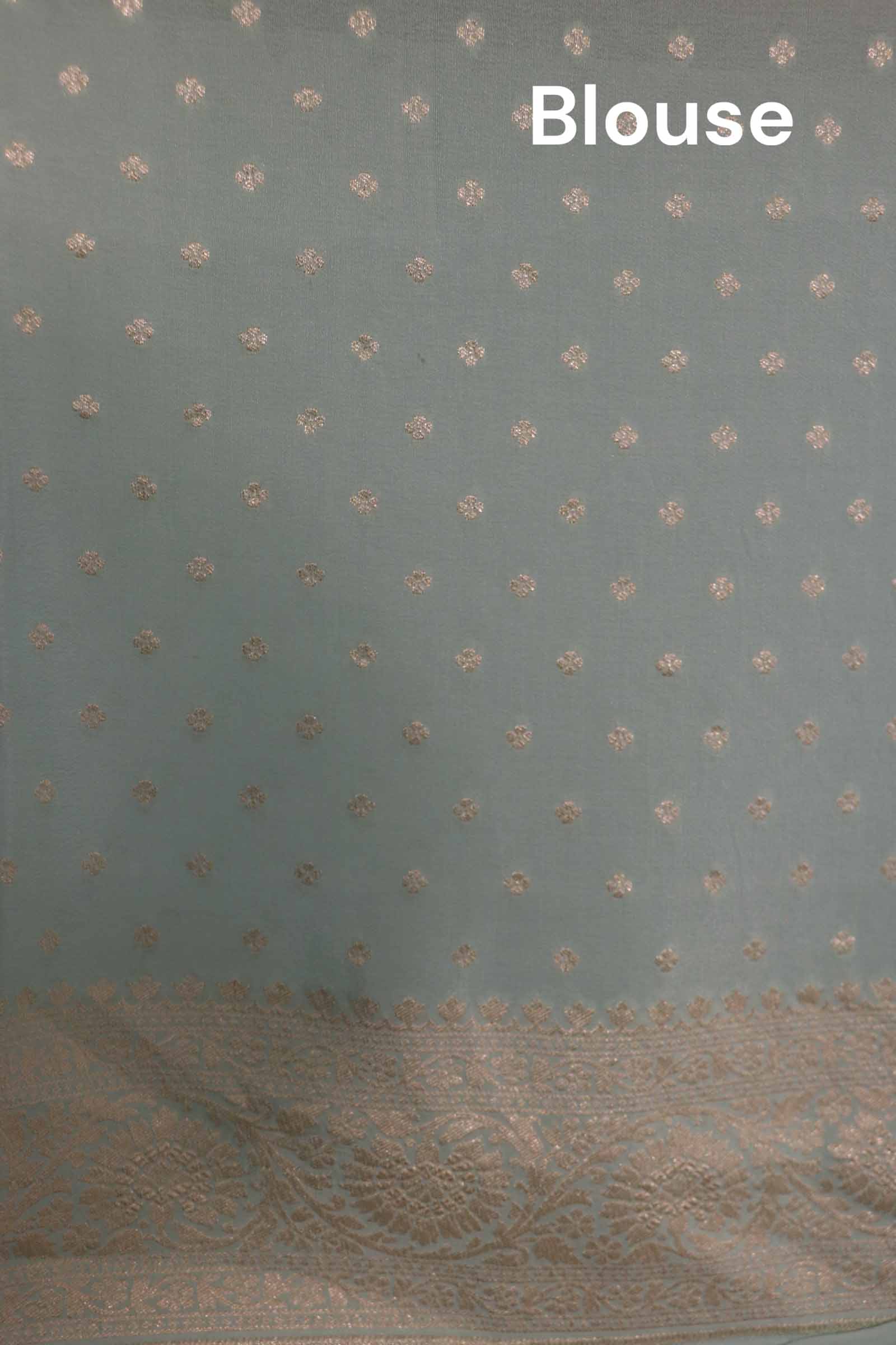 Pure Handloom Zari Butta Banarasi Crepe Silk Saree.