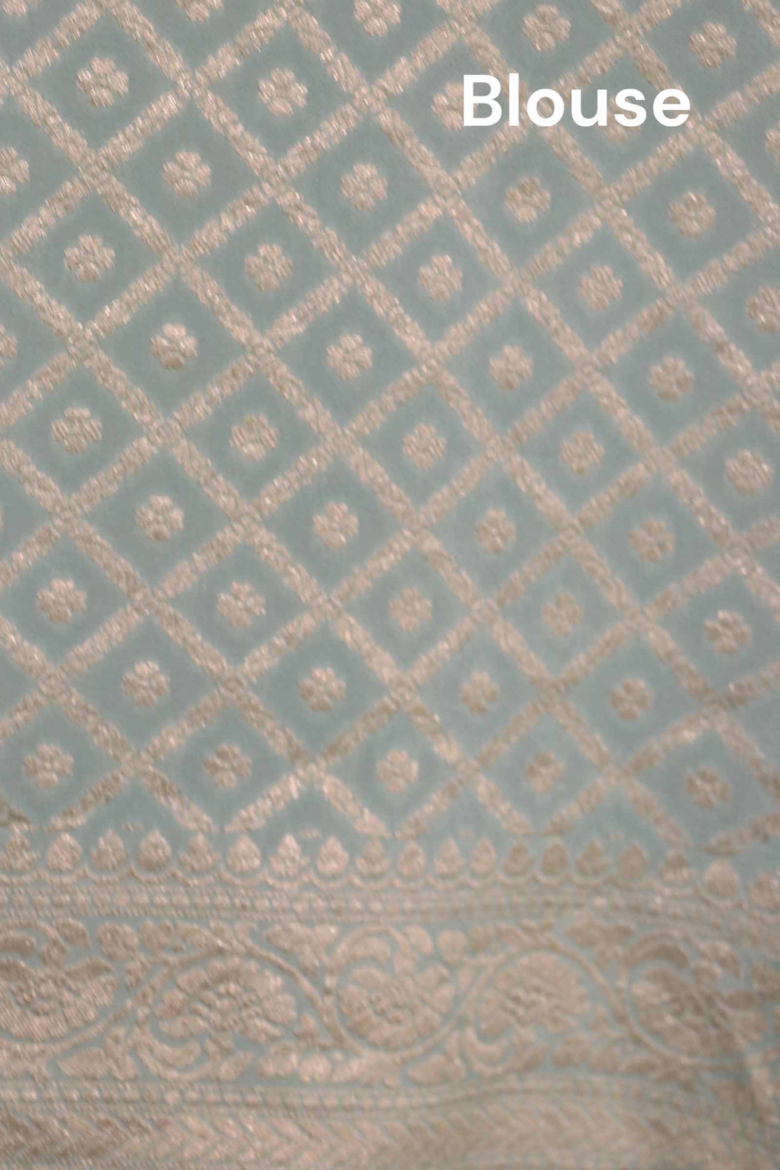Pure Handloom Zari Butta Banarasi Crepe Silk Saree.