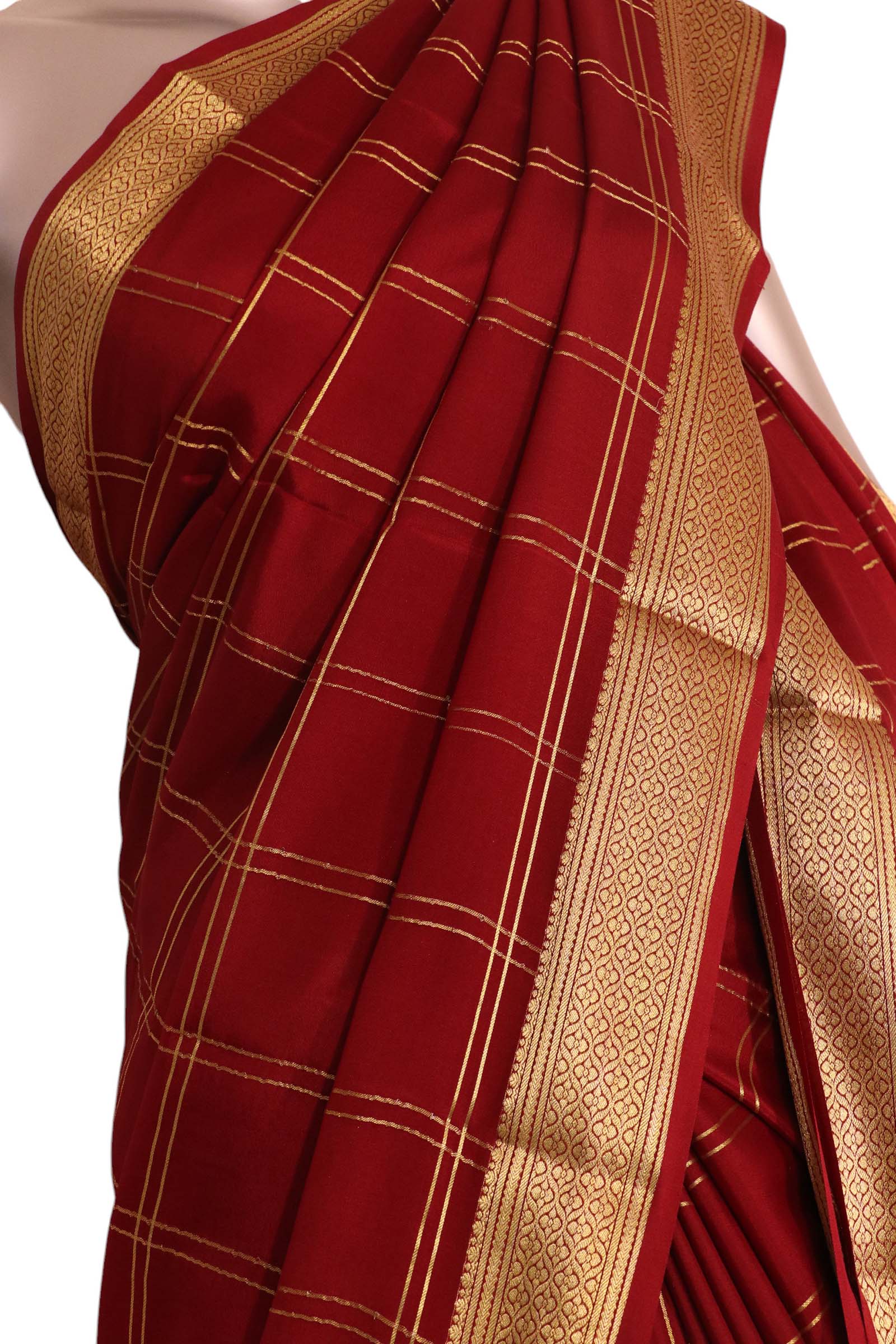 Pure Checks Zari Mysore Crepe Silk Saree.