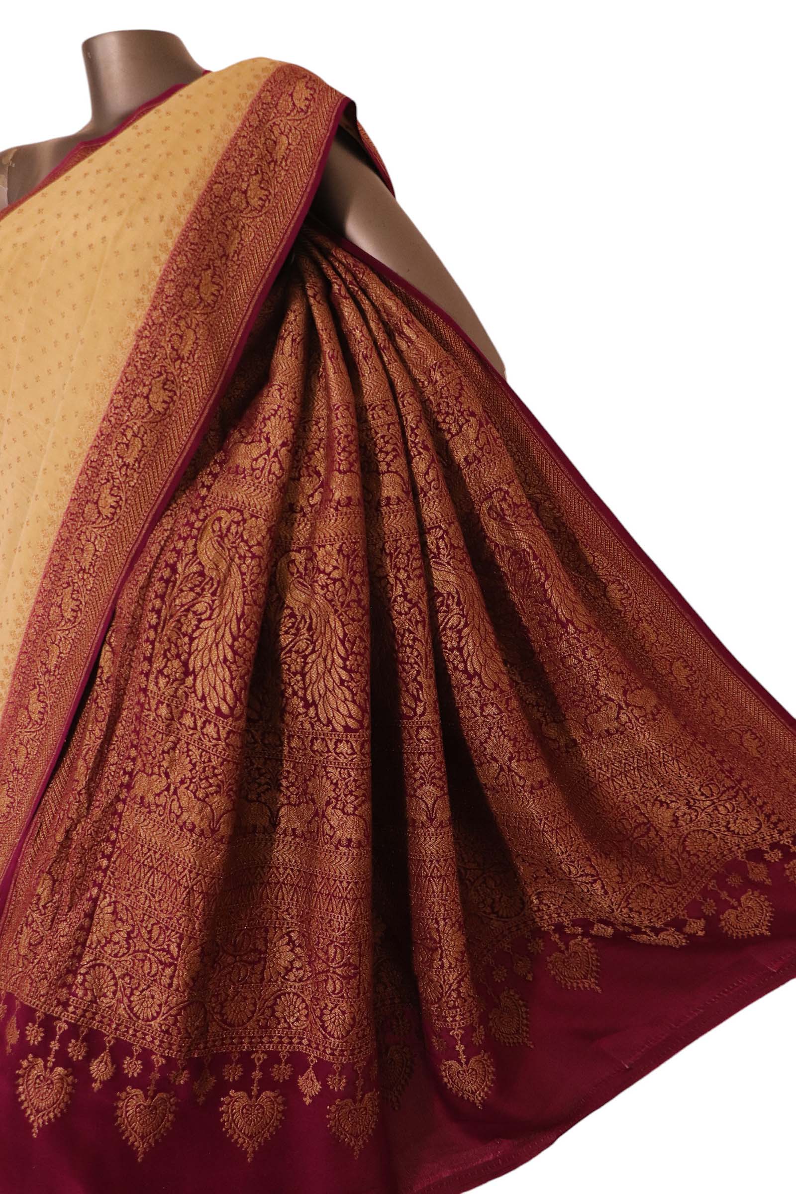 Pure Handloom Zari Butta Banarasi Crepe Silk Saree.