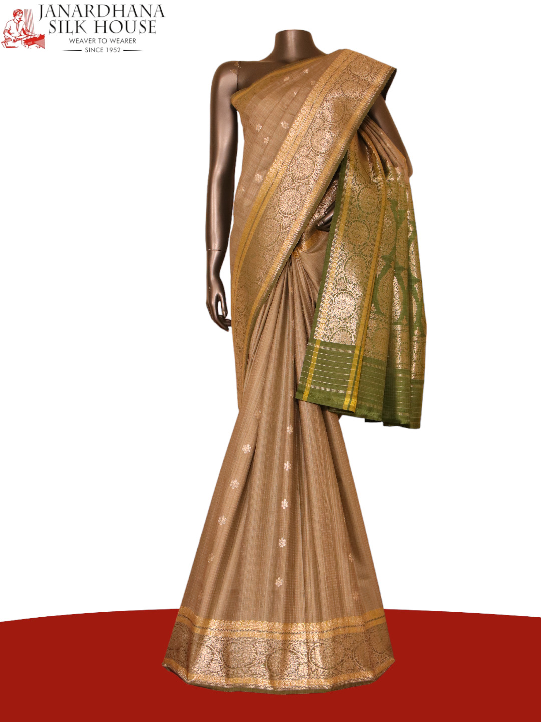 Perfect For A Wedding.Handloom Tussar Silk Saree In Special Zari Butta & A Exclusive Zari Border.A Grand Contrast Zari Butta Zari Pallu & A 0.8mts Meenakari Brocade Blouse With Border.